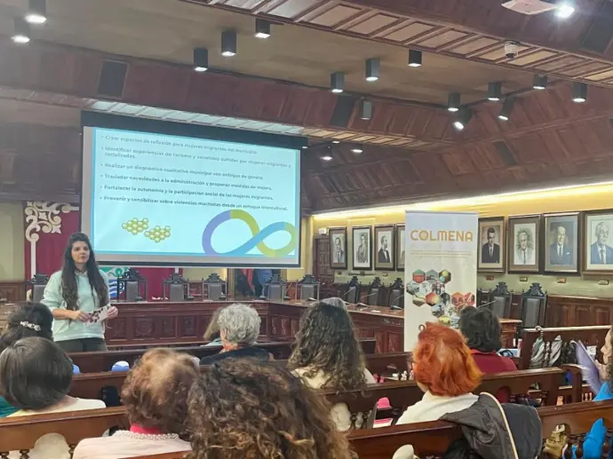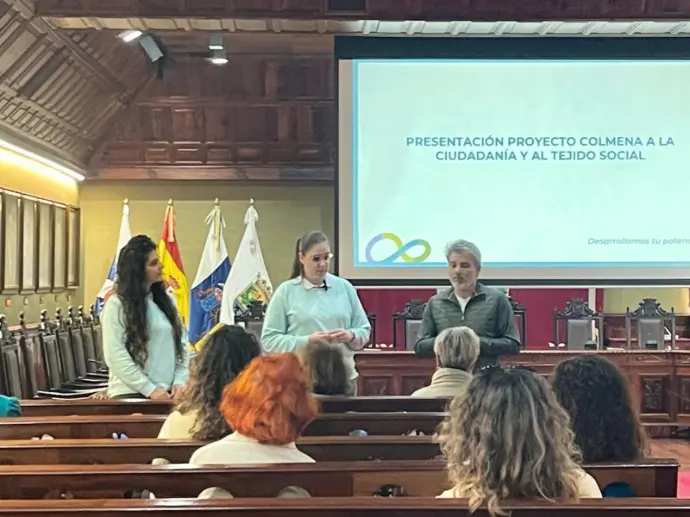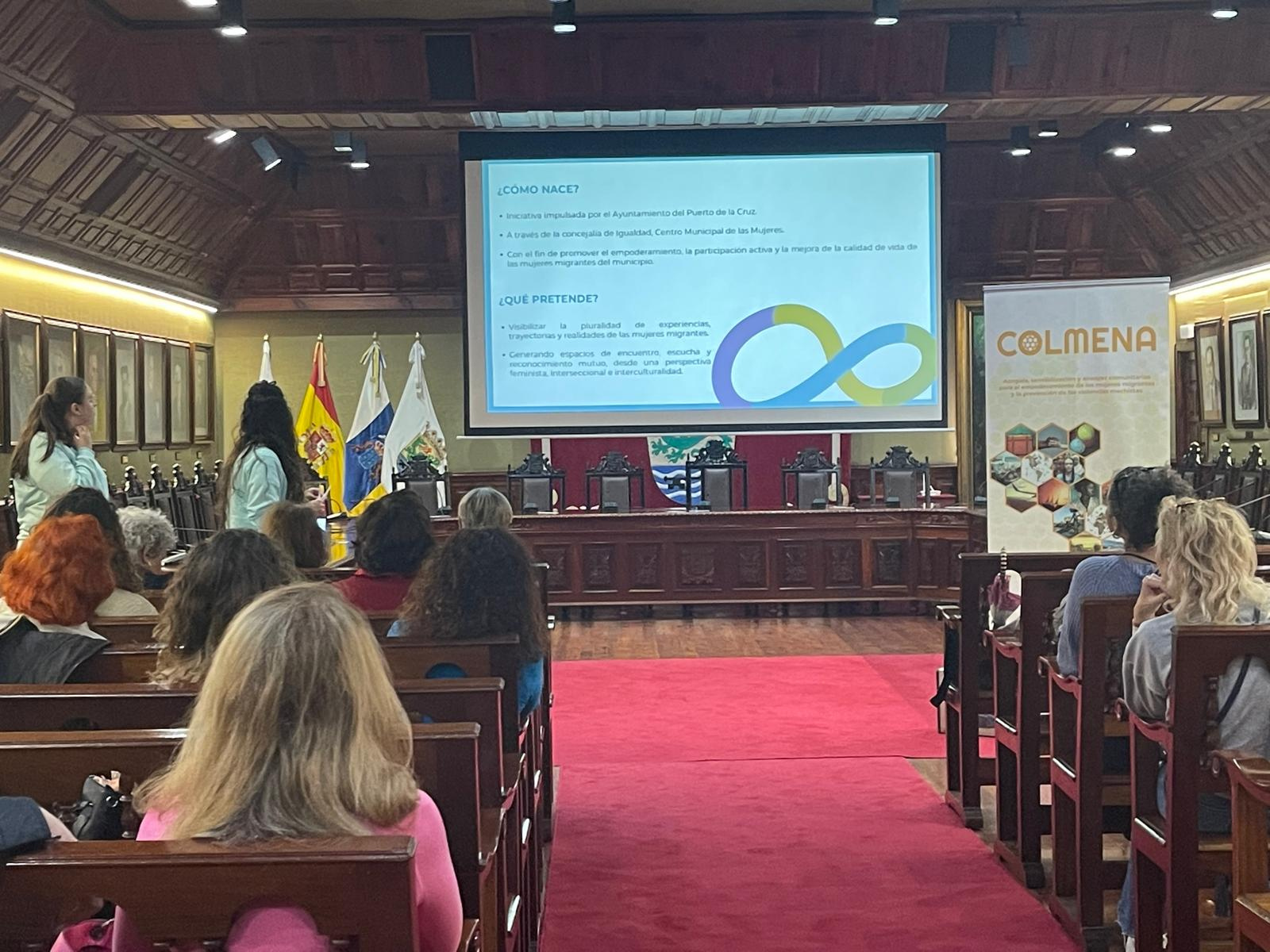 El Salón de Plenos del Ayuntamiento de Puerto de la Cruz acogió el pasado miércoles la presentación oficial del Proyecto Colmena, una iniciativa impulsada por el Cabildo Insular de Tenerife y puesta en marcha por el área de Igualdad del Ayuntamiento portuense, con la participación de la empresa OXiA, encargada de la ejecución del proyecto.