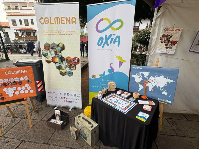En el stand se desarrollaron diversas actividades participativas, entre ellas “La maleta de las personas migrantes”, una dinámica que invita a reflexionar sobre qué tres objetos se llevarían consigo en caso de migrar, fomentando la empatía y la comprensión de las experiencias migratorias. También se presentó “El mapa de la migración”, para visualizar los puntos de salida y llegada de diferentes movimientos migratorios, abriendo el diálogo sobre estos procesos; así como “La oca de la migración”, un juego interactivo con preguntas sobre la realidad migratoria que combinaba aprendizaje y participación activa. Además, se distribuyeron folletos informativos y se realizó la captación de personas interesadas en participar en el proyecto, fortaleciendo la red comunitaria y ampliando el alcance de Colmena.
