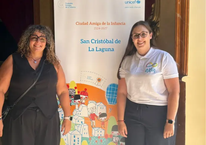 Almudena Arbelo Hernández, coordinadora de infancia de OXiA, participó en el encuentro reflexionando y compartiendo aprendizajes sobre la importancia del reconocimiento de UNICEF y el valor del trabajo en red entre municipios. OXiA como entidad especializada, ha colaborado en la preparación de la candidatura de tres de las cinco entidades canarias que aspiran a obtener el reconocimiento de Ciudad Amiga de la Infancia: el Cabildo Insular de Fuerteventura, Buenavista del Norte y Puerto de la Cruz.